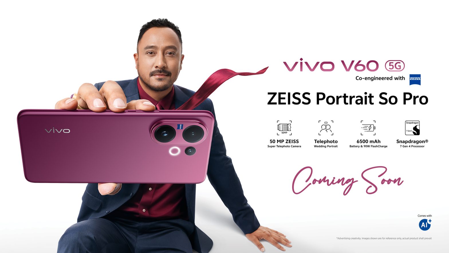 The vivo V60 is expected to introduce a new ZEISS-powered telephoto portrait experience, offering multiple focal lengths for creative freedom and emotional precision. Early insights also hint at powerful AI-driven imaging tools that allow users to remove distractions, polish portraits, enhance quality, and even transform scenes with a single tap putting a full creative studio in the palm of the hand.